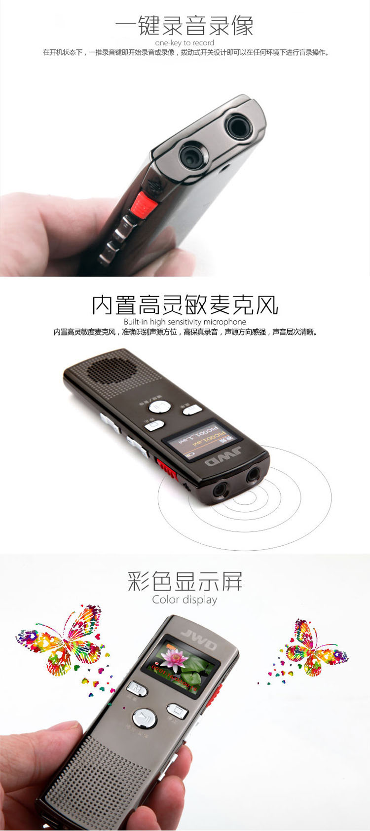 ● 專利技術一鍵錄音/錄像功能(專利號:ZL:201120133338.6)