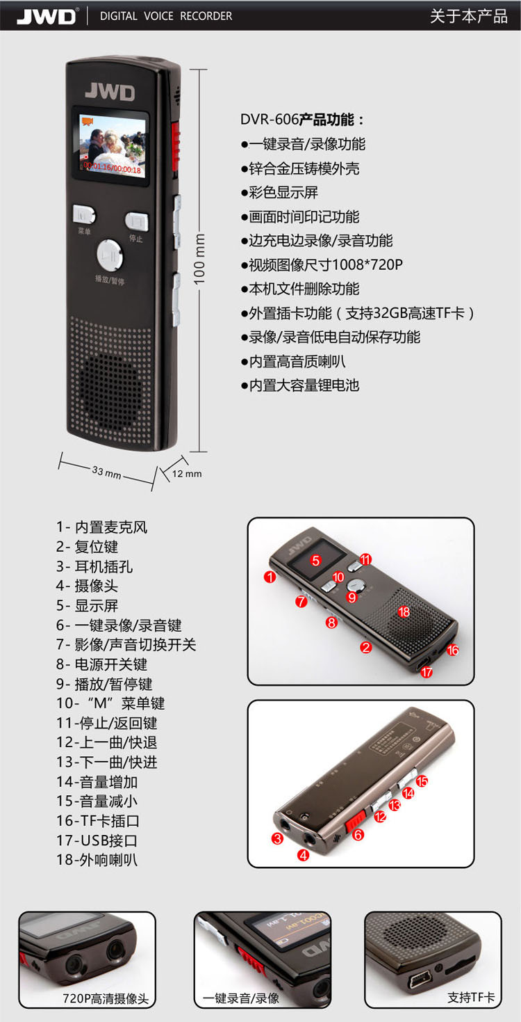 ● 外置插卡功能(最大支持32GB高速TF卡)