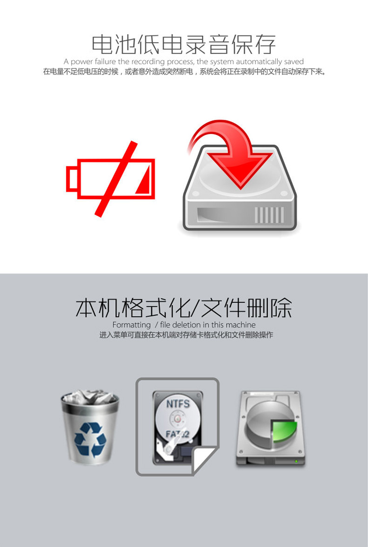 ● 錄像/錄音低電自動保存功能