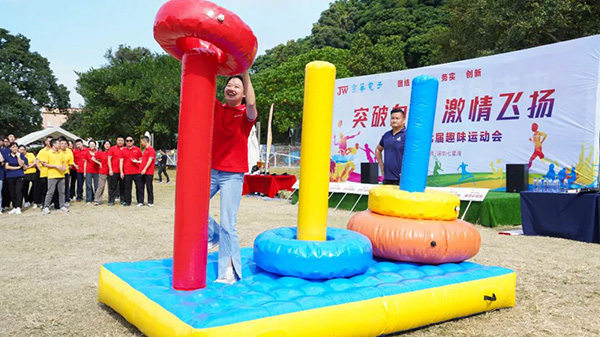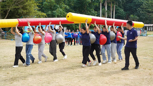 本次趣味運動會兼具競技性、趣味性,形式多樣,主要有“昂首前行”、“團隊漢諾塔”、“不倒森林”、“重錘出擊”、“點球大戰”及“拔河比賽”六個運動項目,這些項目既有速度的角逐,也有力量的比拼。賽場上,隊員們團結協作,在緊張激烈的氛圍中,在此起彼伏的助威吶喊中,揮灑運動激情,享受運動的快樂和競技的樂趣,充分發揮團隊的力量,齊心協力爭取集體榮譽。